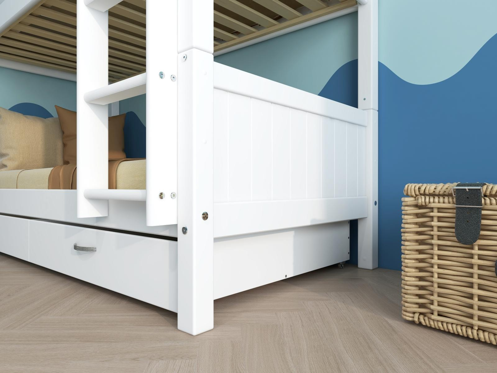 Patrová postel Romantic je skvělým řešením, pokud sourozenci sdílejí pokoj – nebo potřebujete přistýlku pro časté návštěvy přátel a rodiny. Zásuvky pod postelí poskytnou spoustu praktického úložného prostoru. Maximální flexibilita - podle potřeby může být ROZDĚLENA NA 2 SAMOSTATNÉ POSTELE.
