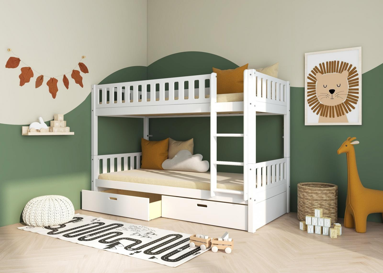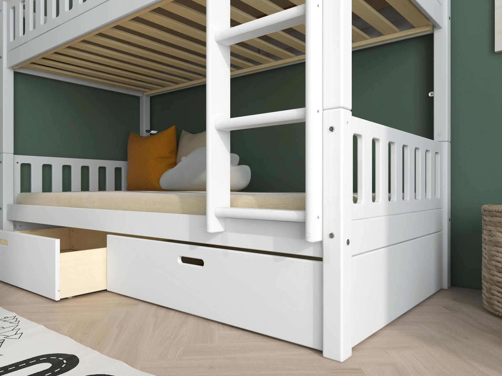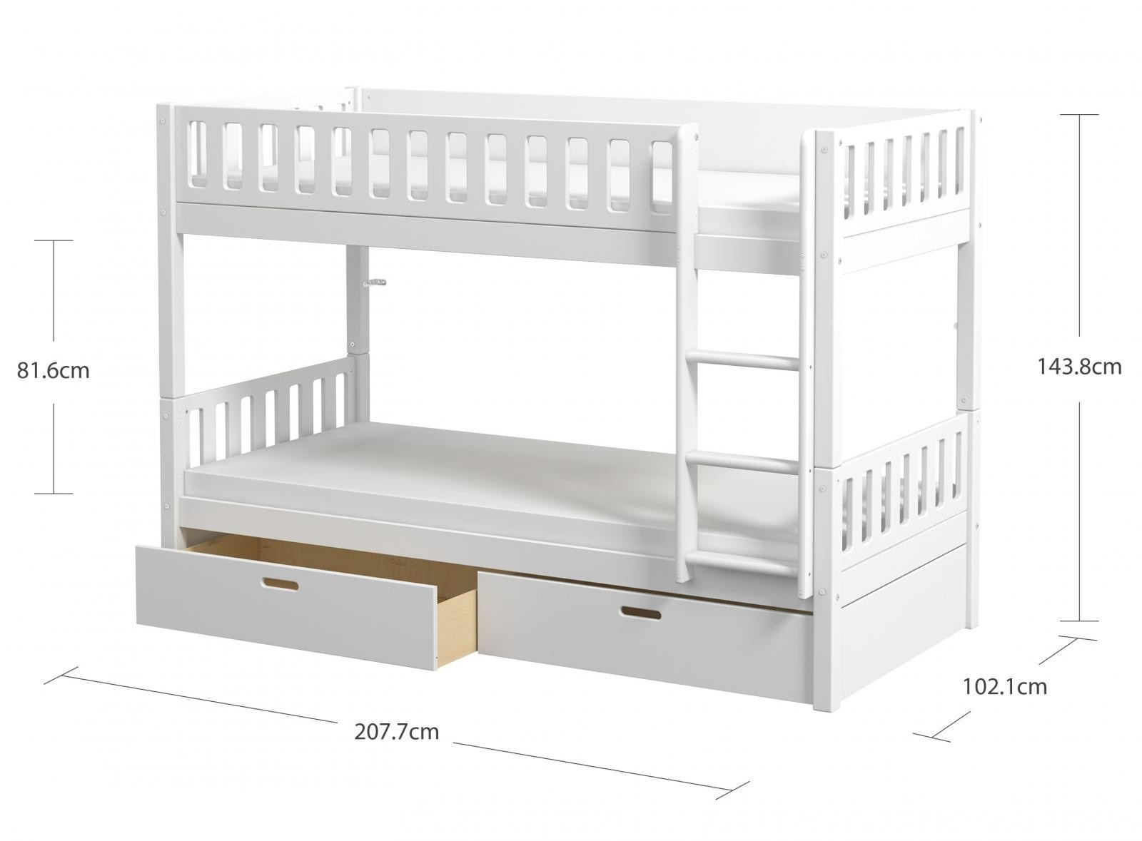 Patrová postel Viggo je skvělým řešením, pokud sourozenci sdílejí pokoj – nebo potřebujete přistýlku pro časté návštěvy přátel a rodiny. Zásuvky pod postelí nabízí spoustu stylového úložného prostoru. DLE POTŘEBY LZE ROZDĚLIT NA 2 SAMOSTATNÉ POSTELE.