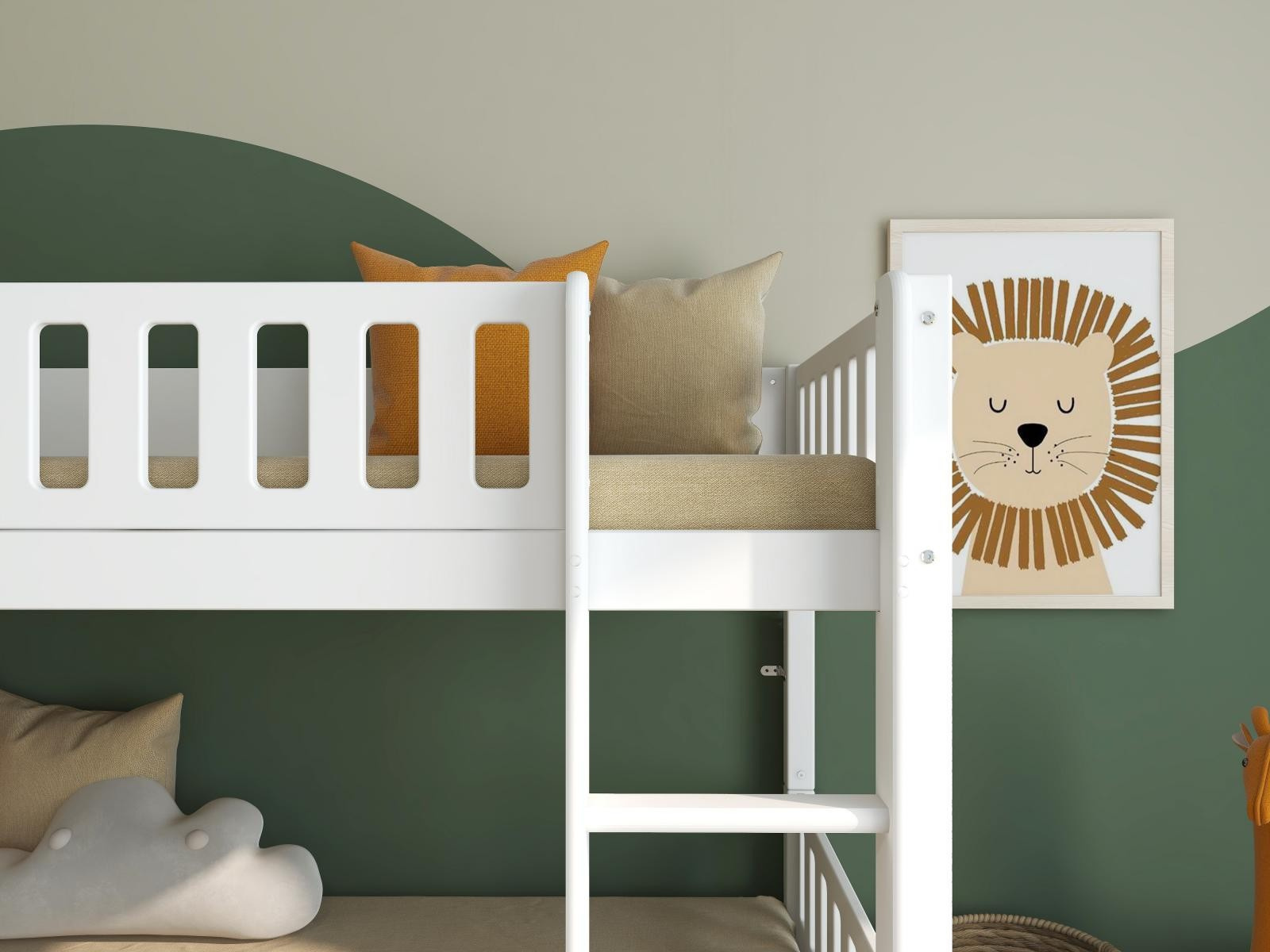 Zboží je dodáváno v demontu BEZ MATRACÍ. Doporučujeme dokoupit 2ks matrace 90 x 200 cm. Součástí je schematický návod na montáž včetně všech spojovacích prvků. Vyobrazené doplňky a dekorace nejsou v ceně.