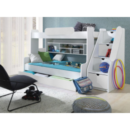 Patrová postel SEGAN je vyrobena z velmi kvalitního lamina šíře 22 mm, které je ukončené ABS hranou. postel má stabilní konstrukci, která Vám zaručuje bezpečí pro Vás a Vaše děti. Schody jsou universální a jde je ustavit na pravou či levou stranu postele a ukrývají v sobě spoustu úložného prostoru. Na velkém spodním lůžku se mohou vyspat i dvě osoby. postel je dodávána včetně roštů, úložných prostorů a bez matrací, které si je u nás možnost také zakoupit. Matrace pro vrchní lůžko je molitanová a pro spodní lůžko je matrace pružinová. Postel si je možné objednat v několika barevných provedeních (bílá, šedá, zelená, modrá, růžová a oranžová).