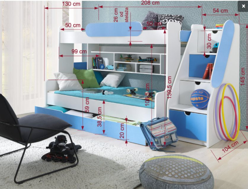 : délka: 262 cm (Postel 208 cm + Schody 54 cm)