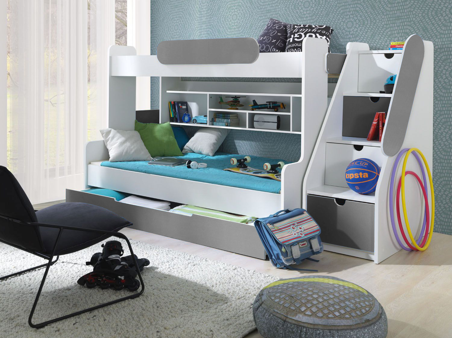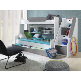 Patrová postel SEGAN je vyrobena z velmi kvalitního lamina šíře 22 mm, které je ukončené ABS hranou. postel má stabilní konstrukci, která Vám zaručuje bezpečí pro Vás a Vaše děti. Schody jsou universální a jde je ustavit na pravou či levou stranu postele a ukrývají v sobě spoustu úložného prostoru. Na velkém spodním lůžku se mohou vyspat i dvě osoby. postel je dodávána včetně roštů, úložných prostorů a bez matrací, které si je u nás možnost také zakoupit. Matrace pro vrchní lůžko je molitanová a pro spodní lůžko je matrace pružinová. Postel si je možné objednat v několika barevných provedeních (bílá, šedá, zelená, modrá, růžová a oranžová).