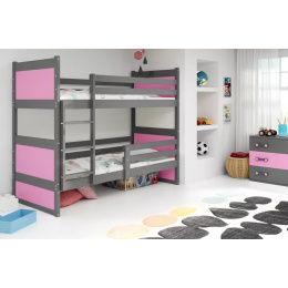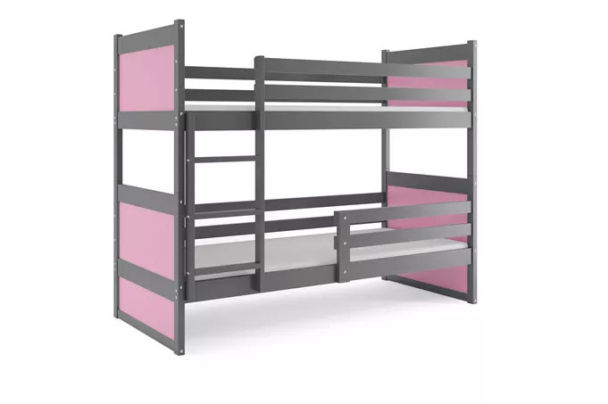 Dětská patrová postel RICO 90x200 cm, bez matrace, Grafit/Růžová