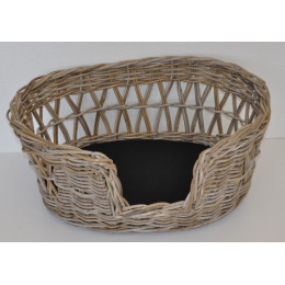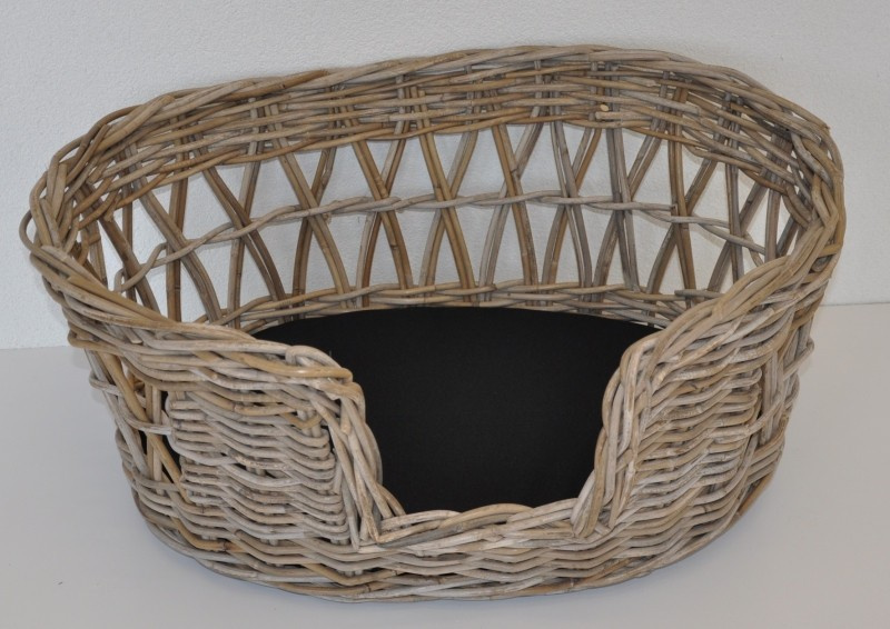 Pelech pro pejska vyrobený z přírodního ratanu kubu v přírodní šedé barvě. | Velikost pelechu je 73x55x35 cm Pelech dodáváme s vnitřní poduškou v černé barvě. Vzhledové vady se týkají tvaru pelíšku, který není zcela symetrický, jak je vidět například na fotografii výrobku.
