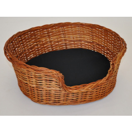 Proutěný pelech vyrobený z přírodní kapradiny bez povrchové úpravy lakováním. | Velikost pelechu je 48x39x19 cm. Polstr v černé barvě je plněný polyesterovým antialegenním vláknem.>