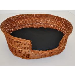 Proutěný pelech vyrobený z přírodní kapradiny bez povrchové úpravy lakováním. | Velikost pelechu je 63x51x22 cm. Polstr v černé barvě je plněný polyesterovým antialegenním vláknem.>
