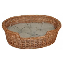Pelíšek vyrobený z přírodního vrbového proutí. | Pelíšek dodávame včetně měkkého vniřního polštáře. Velikost pelíšku je 63x45x19 cm. Velikost vnitřního polštáře je 56x38 cm.