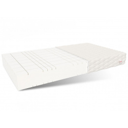 GOYA MAX je vysoce kvalitní oboustranná matrace. Díky použití řady podélných a příčných řezů je matrace rozdělena do 7 zón. To vede k výraznému zvýšení plasticity a poskytuje vynikající oporu páteře. Pěna má nestejnoměrnou buněčnou strukturu, díky níž dosahuje lepší opory těla, pohodlí a parametrů pružnosti. Zajišťuje, že se matrace dokonale přizpůsobí tvaru těla, a přitom zůstává velmi lehká. Tento materiál je mimořádně trvanlivý a odolný proti deformaci. Pórovitá struktura zajišťuje dokonalou cirkulaci vzduchu, která zabraňuje vzniku hub a plísní. Rovina, obrysově vyřezaná do formy mřížky, se vyznačuje svými ortopedickými vlastnostmi. Specifikace: tvrdost: H4 hard, tloušťka: 21 cm. Složení: HR pěna: 20 cm, Potah: 1 cm.