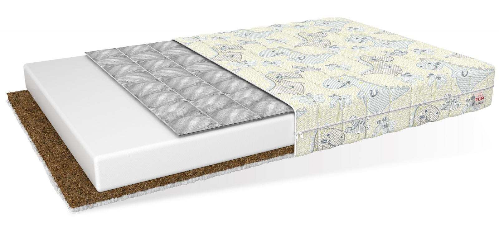 MIKI DINO je model vytvořený speciálně pro nejmenší. Jádro této matrace tvoří polyuretanová pěna T25. Jedná se o materiál, který se nedeformuje, takže matrace je velmi pohodlná a zaručuje komfortní spánek. Kvalitní pěna poskytuje velmi dobrou oporu páteři. Tato matrace je navíc obohacena o kokosovou a pohankovou rohož. Přirozené vlastnosti těchto dvou vrstev dodávají matraci zdraví prospěšné vlastnosti. Dokonale chrání před roztoči a bakteriemi. Specifikace: tvrdost: H2 středně měkká; H3 středně tvrdá, tloušťka: 8 cm. Složení: Užitná plocha: Oboustranná , Vložka z kokosového vlákna: 1 cm, Pohanka: 1 cm, Polyuretanová pěna T25: 6 cm.
