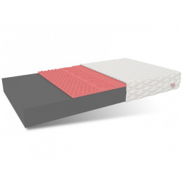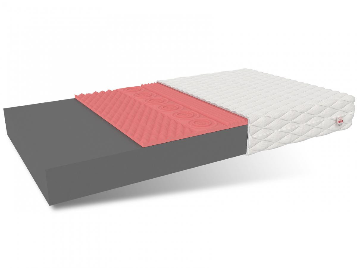 Matrace PERUGIA je vyrobena z kombinace dvou vrstev s vynikajícími vlastnostmi. Jádro matrace tvoří polyuretanová pěna T25 vyšší kvality. Nedeformuje se, takže je velmi pohodlný a zaručuje komfort spánku. Sedmizónová termoplastická pěna VISCO se dokonale přizpůsobuje tvaru a siluetě uživatele pod vlivem tlaku a tělesné teploty. Přispívá k minimalizaci potíží spojených s páteří. Specifikace: tvrdost: H3 středně tvrdá, tloušťka: 12 cm. Složení: Potah: 1 cm, polyuretanová pěna T25: 9 cm, profilovaná pěna V40: 2 cm.