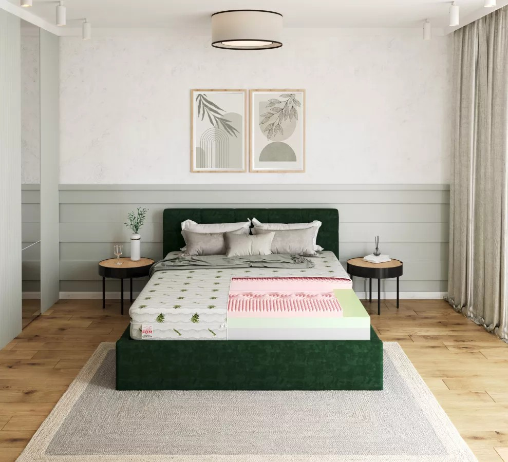 Materac piankowy ROTELLO Model ROTTELLO to kombinacja kilku warstw pianek syntetycznych o unikatowych cechach. Materac ten powstał z połączenia strefowej pianki wysokoelastycznej HR oraz pianki poliuretanowej T25, o podwyższonej wytrzymałości. Dzięki takiemu zestawieniu materac cechuje wyjątkowa odporność na odkształcenia oraz doskonałe dopasowanie do sylwetki użytkownika. Wysoka jakość pianek zapewnia bardzo dobre podparcie dla kręgosłupa, jak i całego ciała. Dodatkowo pianki zapewniają dobrą cyrkulację powietrza, powstrzymując rozkwit pleśni, grzybów i innych alergenów. Zalety materaca ROTELLO Bardzo dobra elastyczność i sprężystość Odporność na odkształcenia Bardzo dobra przepuszczalność powietrza Materac obustronny – H3 Grubość – 17 cm Właściwości antyalergiczne Wytrzymały i oddychający pokrowiec ALOEVERA Dodatkowo materac ROTELLO posiada warstwę profilowanej pianki termoplastycznej VISCO, która podzielona jest na 7stref. Oznacza to, że po