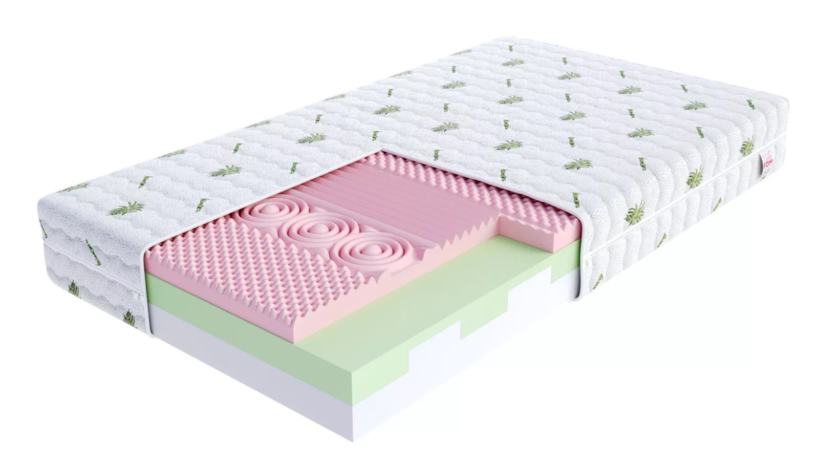 Materac piankowy ROTELLO Model ROTTELLO to kombinacja kilku warstw pianek syntetycznych o unikatowych cechach. Materac ten powstał z połączenia strefowej pianki wysokoelastycznej HR oraz pianki poliuretanowej T25, o podwyższonej wytrzymałości. Dzięki takiemu zestawieniu materac cechuje wyjątkowa odporność na odkształcenia oraz doskonałe dopasowanie do sylwetki użytkownika. Wysoka jakość pianek zapewnia bardzo dobre podparcie dla kręgosłupa, jak i całego ciała. Dodatkowo pianki zapewniają dobrą cyrkulację powietrza, powstrzymując rozkwit pleśni, grzybów i innych alergenów. Zalety materaca ROTELLO Bardzo dobra elastyczność i sprężystość Odporność na odkształcenia Bardzo dobra przepuszczalność powietrza Materac obustronny – H3 Grubość – 17 cm Właściwości antyalergiczne Wytrzymały i oddychający pokrowiec ALOEVERA Dodatkowo materac ROTELLO posiada warstwę profilowanej pianki termoplastycznej VISCO, która podzielona jest na 7stref. Oznacza to, że po