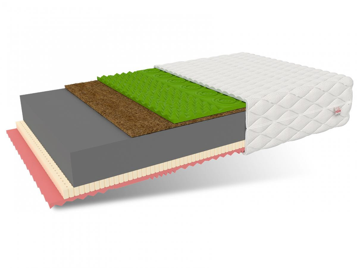 Matrace SAVONA byla vytvořena s ohledem na nejnáročnější zákazníky. Základem matrace je polyuretanová pěna T25 se zvýšenou pevností. Jednu stranu matrace tvoří kombinace 7zónové profilované pěny HR s vysokou pružností a kokosové rohože, která zpevňuje povrch. Na druhé straně je vrstva latexu a profilované termoplastické pěny VISCO s funkcí tvarové paměti. Tato kombinace dělá z matrace oblíbenou pěnovou matraci. Specifikace: tvrdost: H4 hard; H3 medium hard, tloušťka: 22 cm. Složení: kokosová vložka: 1 cm, perforovaný latex: 2 cm, polyuretanová pěna T25: 14 cm, potah: 1 cm, profilovaná pěna V40: 2 cm, vysoce elastická profilovaná pěna R44: 2 cm.