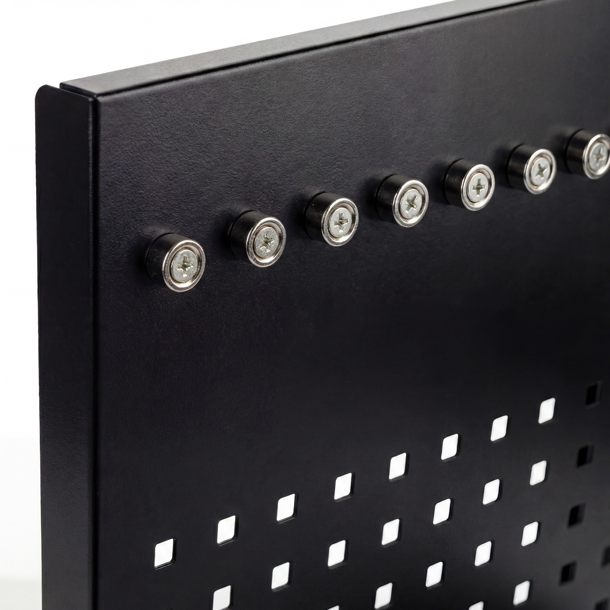 Zapomeňte na tradiční háčky, které se snadno ohýbají a padají. Naše tabule je vybavena osmi silnými neodymovými magnety, které udrží i těžší kovové nástroje a součástky. Magnety můžete libovolně rozmístit po tabuli a vytvořit si tak dokonalý systém pro uspořádání šroubků, klíčů, bitů a dalšího drobného nářadí.