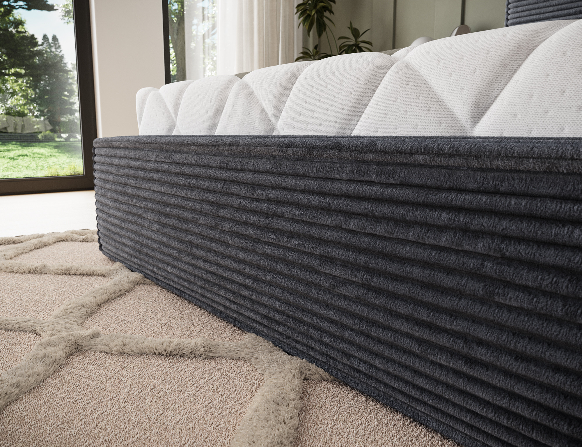 Postel do ložnice Pesillo kombinuje eleganci a funkčnost v moderním designu. Model je k dispozici ve třech velikostních variantách: 140x200 cm, 160x200 cm a 180x200 cm, což vám umožní dokonale přizpůsobit postel rozměrům vaší ložnice a vašim individuálním potřebám. Celková výška postele je 103 cm, zatímco její hloubka měří 220 cm. Šířka závisí na vybraném modelu a je 158 cm, 178 cm nebo 198 cm. Pěnová výplň T2130 zajišťuje pohodlí a odolnost, zatímco robustní černé plastové nohy nábytku poskytují stabilitu a elegantní vzhled. Postel Pesillo je vybavena praktickým úložným prostorem na lůžkoviny, což umožňuje efektivní využití prostoru a snadnou organizaci. Navržen v moderním stylu, dokonale zapadá do současných trendů interiérového designu, vytváří útulnou a elegantní atmosféru ideální pro relaxaci.