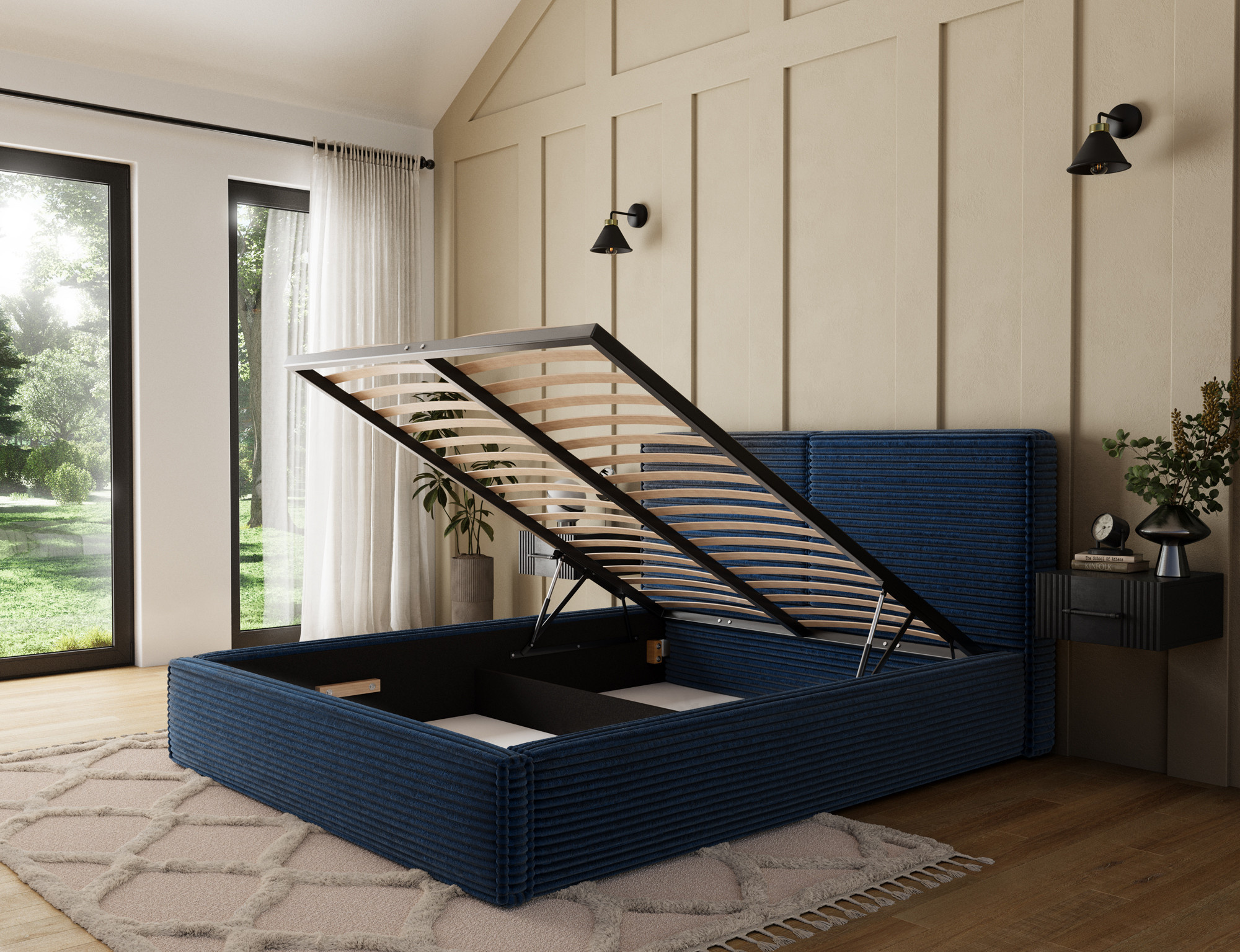 Postel do ložnice Pesillo kombinuje eleganci a funkčnost v moderním designu. Model je k dispozici ve třech velikostních variantách: 140x200 cm, 160x200 cm a 180x200 cm, což vám umožní dokonale přizpůsobit postel rozměrům vaší ložnice a vašim individuálním potřebám. Celková výška postele je 103 cm, zatímco její hloubka měří 220 cm. Šířka závisí na vybraném modelu a je 158 cm, 178 cm nebo 198 cm. Pěnová výplň T2130 zajišťuje pohodlí a odolnost, zatímco robustní černé plastové nohy nábytku poskytují stabilitu a elegantní vzhled. Postel Pesillo je vybavena praktickým úložným prostorem na lůžkoviny, což umožňuje efektivní využití prostoru a snadnou organizaci. Navržen v moderním stylu, dokonale zapadá do současných trendů interiérového designu, vytváří útulnou a elegantní atmosféru ideální pro relaxaci.