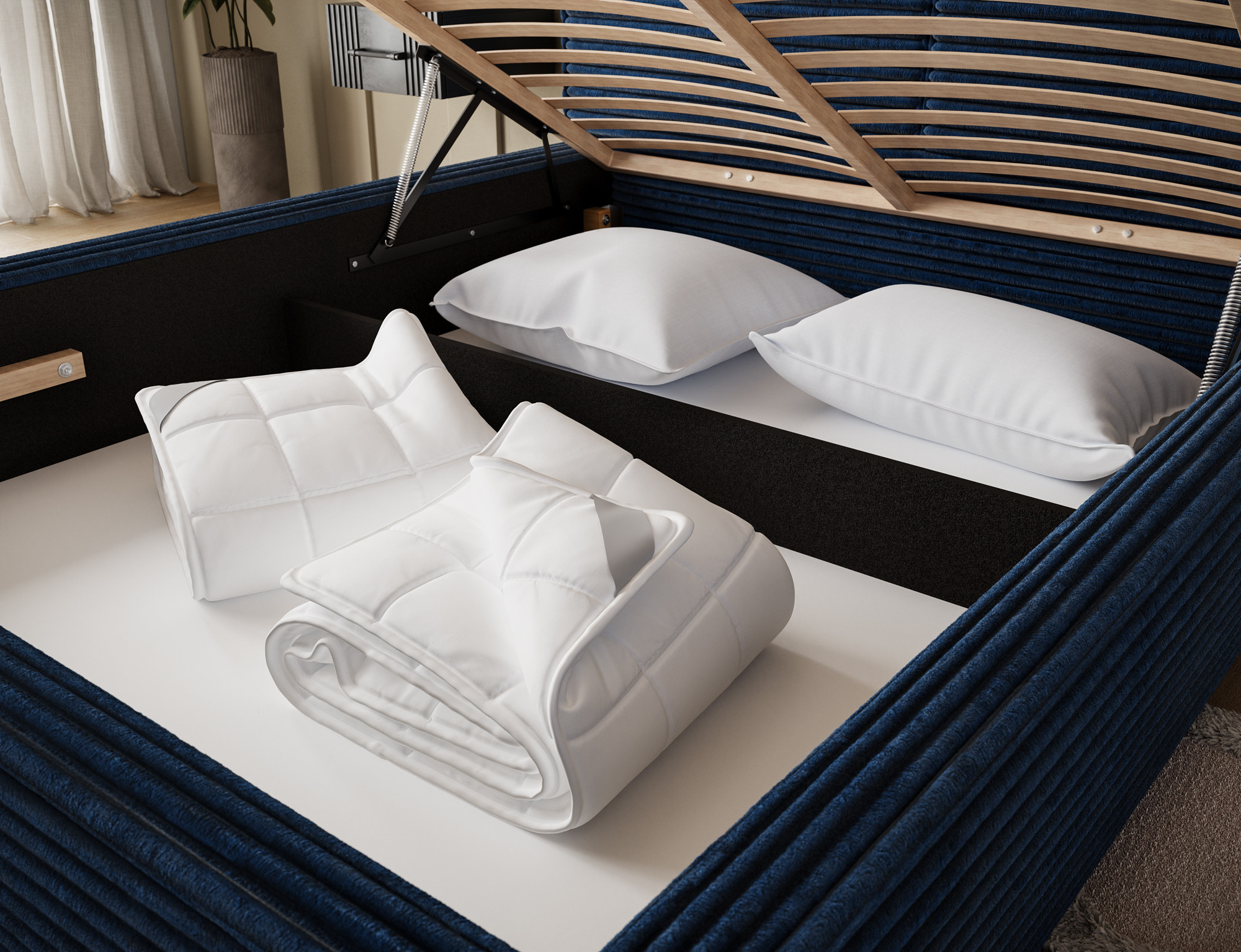 Pesillo Postel + dřevěný rám/ standardní zvedání/ úložný box na lůžkoviny 180x200 Modullo 40 1