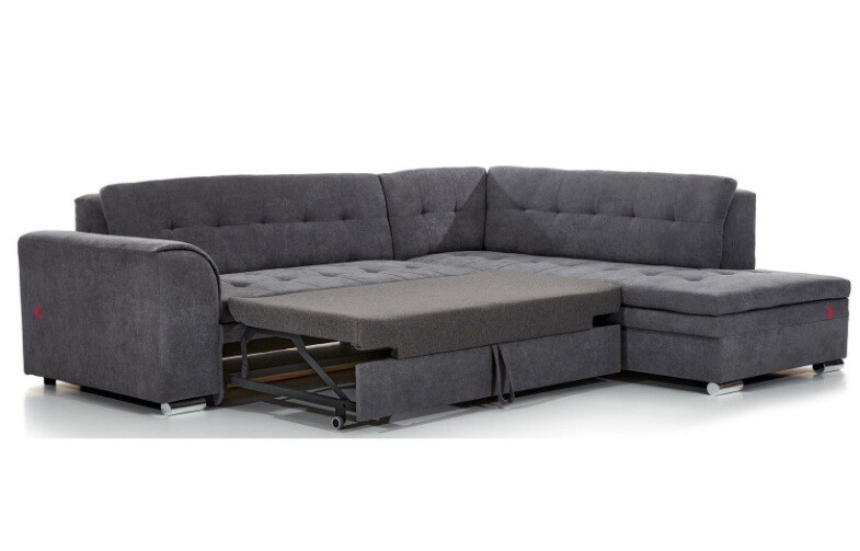 Díky typu rozkládání delfín můžete rohovou sedací soupravu snadno a rychle přeměnit na pohodlnou postel. Spací plocha o rozměrech 200 x 126 cm nabízí dostatek místa pro klidný spánek. Tato funkce je ideální pro nečekané hosty nebo pro ty, kteří si chtějí dopřát odpočinek během dne.