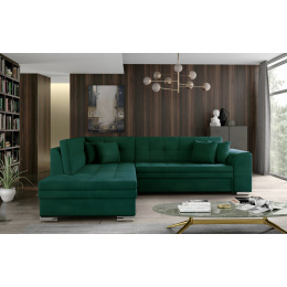 Pieretta je multifunkční, přesto elegantní a prostorná rohová pohovka vyrobená v klasickém stylu. Jedná se o vysoce kvalitní kus nábytku se širokým sedákem, jehož výplň je vytvořena z kombinace vlnité pružiny a pěny T30.Za Pierettou s rozměry 260 x 205 x 80 cm se neskrývá jen pohodlí, ale také dobře prospané noci díky mimořádně velké spací ploše. Typ rozkládání delfín vám umožňuje snadno a bez námahy rozložit pohovku, čímž ji obohatíte o funkci prostorné postele s rozměry 200 x 126 cm.Maximální efekt vnímaného pohodlí je ovlivněn mimo jiné měkkým sedákem, šikmou tvarovanou opěrkou rukou, velkými polštáři zahrnutými v sadě, stejně jako chromovanými oválnými nohami a tvarovaným opěradlem s elegantním prošíváním. Pokud vás zajímá, co dalšího může rohová sedačka Pieretta nabídnout - neváhejte si vybrat kus nábytku od Eltap.