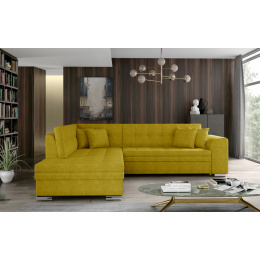 Pieretta je multifunkční, přesto elegantní a prostorná rohová pohovka vyrobená v klasickém stylu. Jedná se o vysoce kvalitní kus nábytku se širokým sedákem, jehož výplň je vytvořena z kombinace vlnité pružiny a pěny T30.Za Pierettou s rozměry 260 x 205 x 80 cm se neskrývá jen pohodlí, ale také dobře prospané noci díky mimořádně velké spací ploše. Typ rozkládání delfín vám umožňuje snadno a bez námahy rozložit pohovku, čímž ji obohatíte o funkci prostorné postele s rozměry 200 x 126 cm.Maximální efekt vnímaného pohodlí je ovlivněn mimo jiné měkkým sedákem, šikmou tvarovanou opěrkou rukou, velkými polštáři zahrnutými v sadě, stejně jako chromovanými oválnými nohami a tvarovaným opěradlem s elegantním prošíváním. Pokud vás zajímá, co dalšího může rohová sedačka Pieretta nabídnout - neváhejte si vybrat kus nábytku od Eltap.