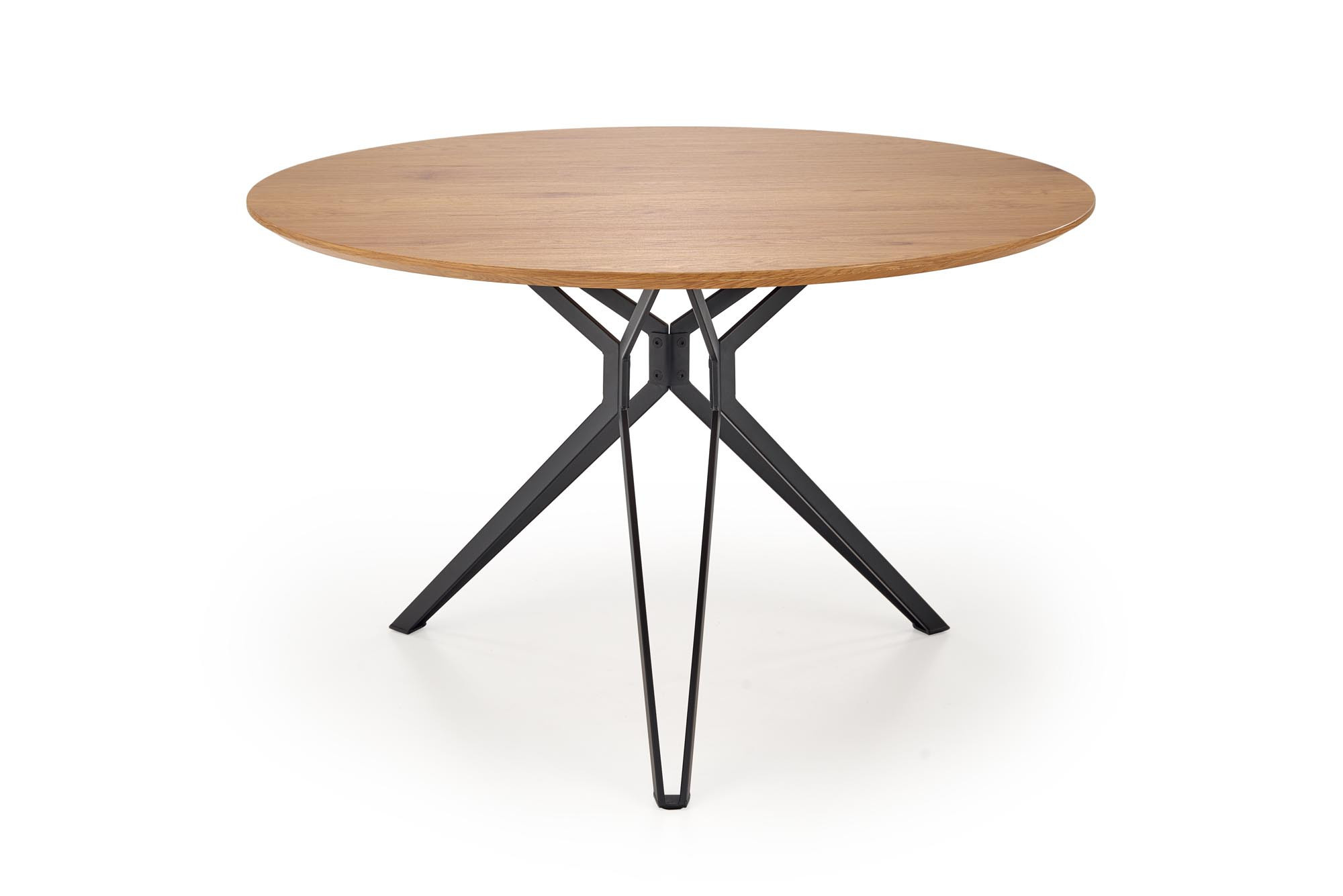 rozměry: fi120/76 cm, materiál: MDF laminovaná / práškově lakovaná ocel, barva: horní deska - zlatý dub, rám - černý