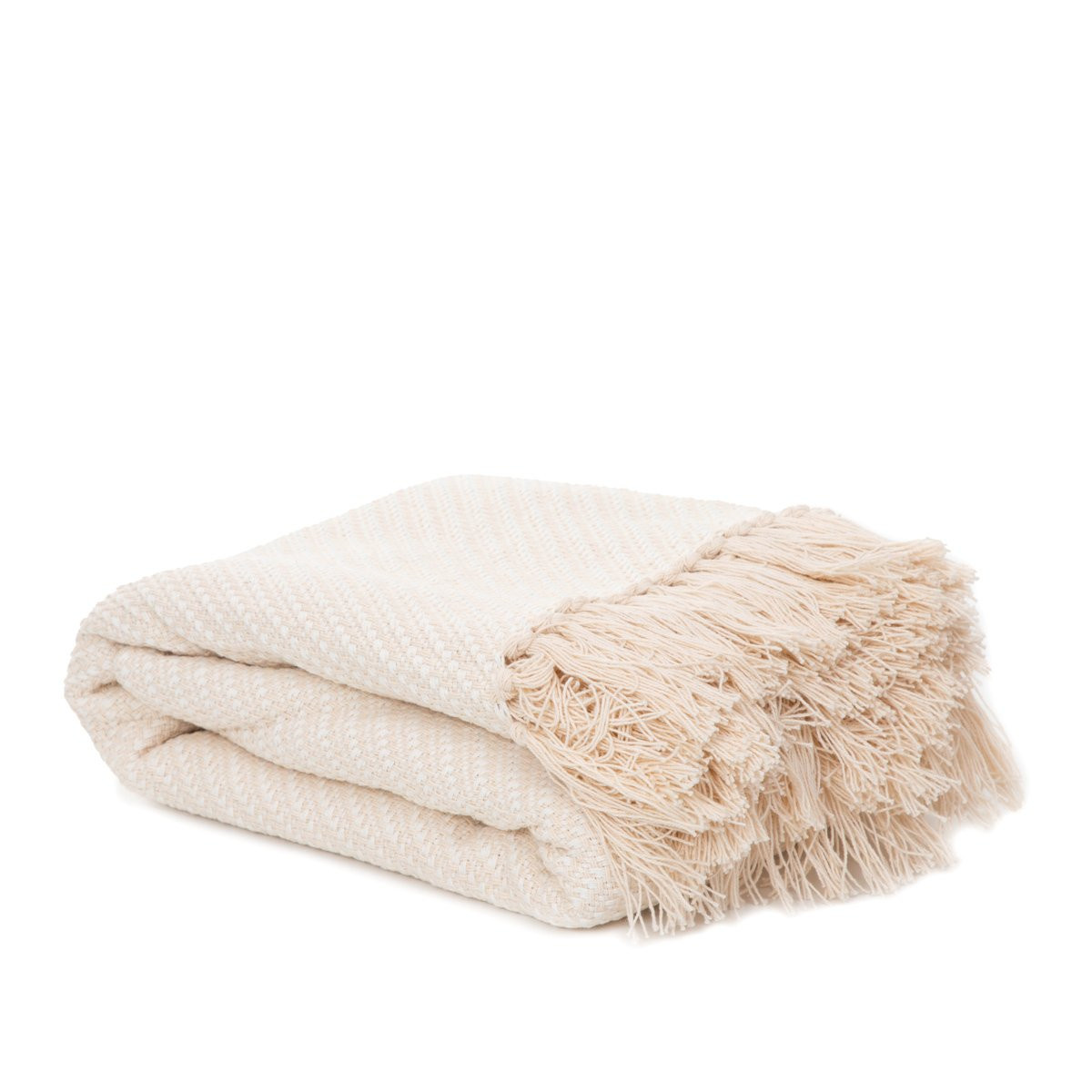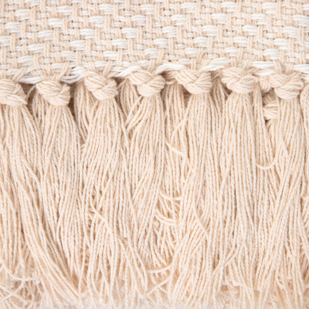 Batoh MORRIS s třásněmi v barvě ecru je vyroben z vysoce kvalitní bavlny. Materiál zajišťuje odolnost a odolnost vůči poškození. Další výhodou je jeho měkkost, bavlna je příjemná na dotek, což udrží vaše tělo v teple během zdřímnutí.