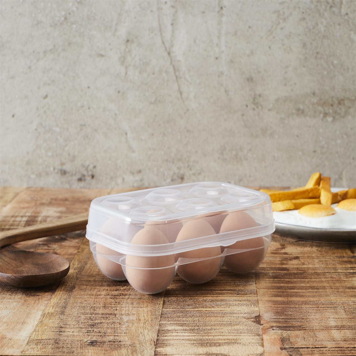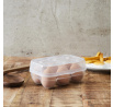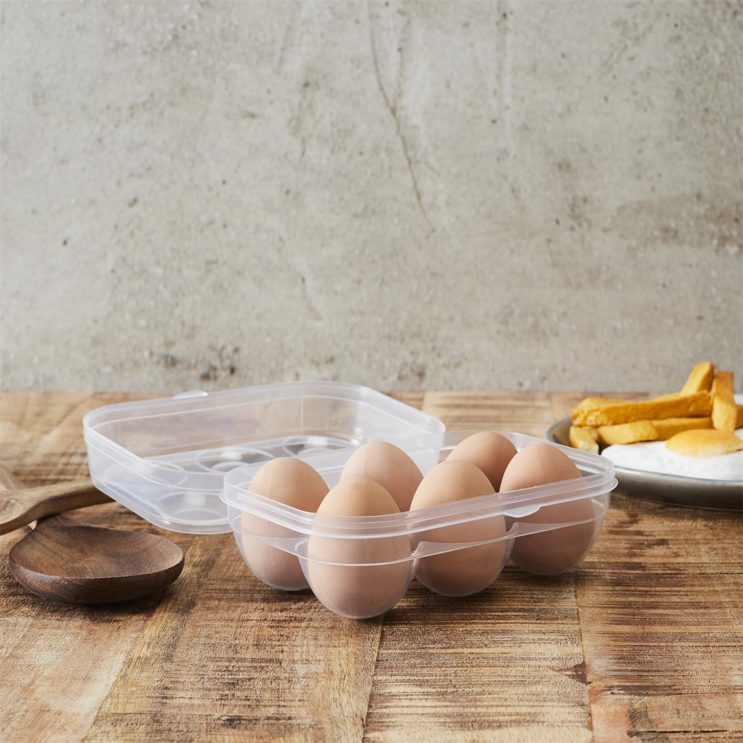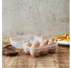 Kontejner na 6 vajec byl vyroben z plastu. Uzavíratelný kontejner s přihrádkami zaručuje bezpečný transport vajec a jejich skladování v lednici.