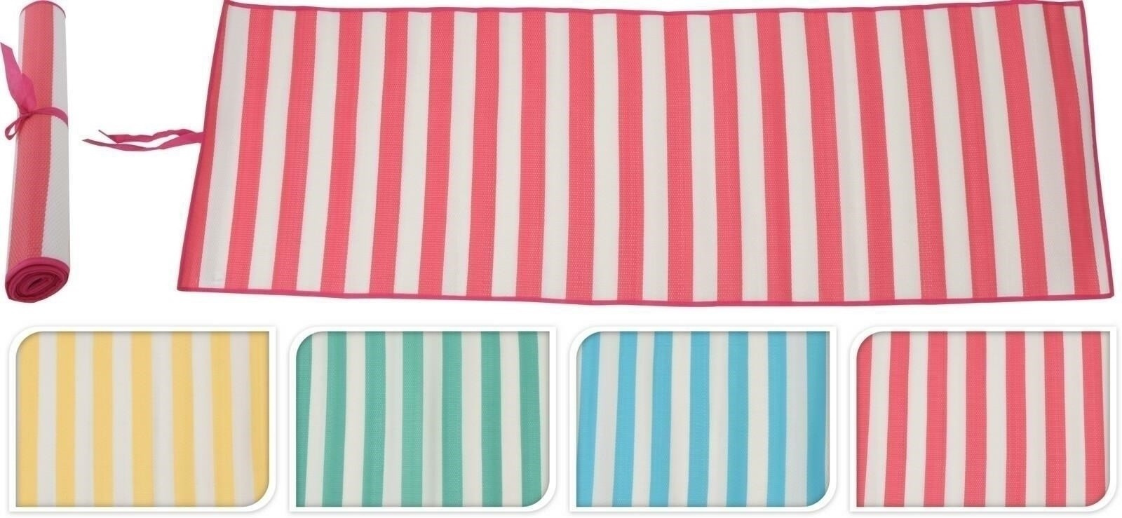 Plážová podložka vyrobená z polypropylenu, který je velmi odolný a odolný vůči povětrnostním podmínkám. Podložka se osvědčí při opalování na písečné pláži. Odpočinek na takové podložce nás chrání před přilepením písku na naši pokožku zvlhčenou opalovacím krémem. Rohož lze snadno srolovat.