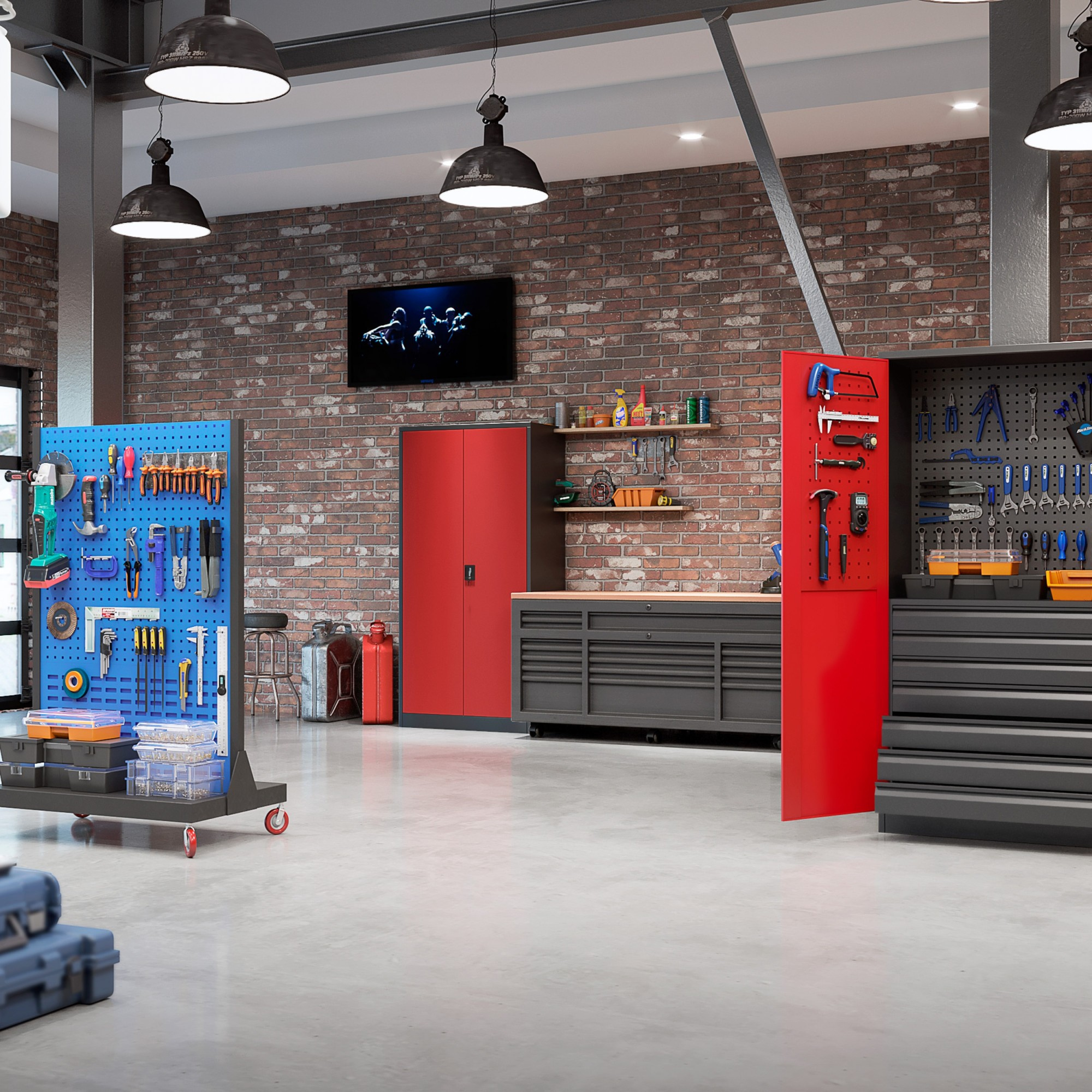 Skříň DAREK - Antracitově-červená: Perfektní řešení pro vaši dílnu