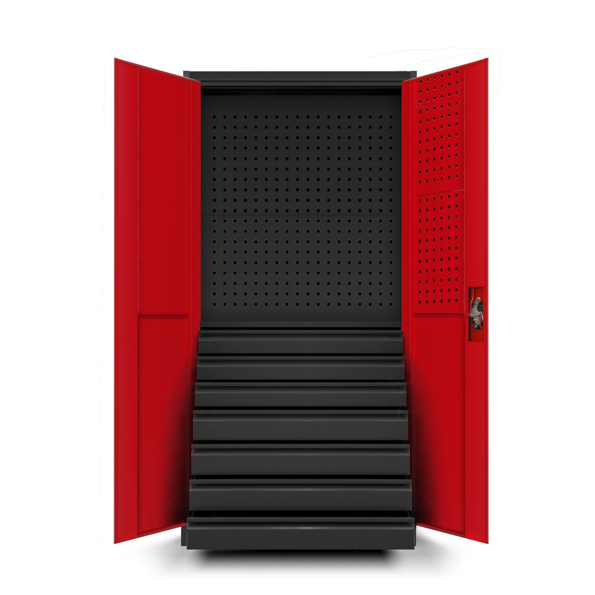Plechová dílenská skříň se zásuvkami DAREK, 920 x 1850 x 500 mm, antracitovo-červená