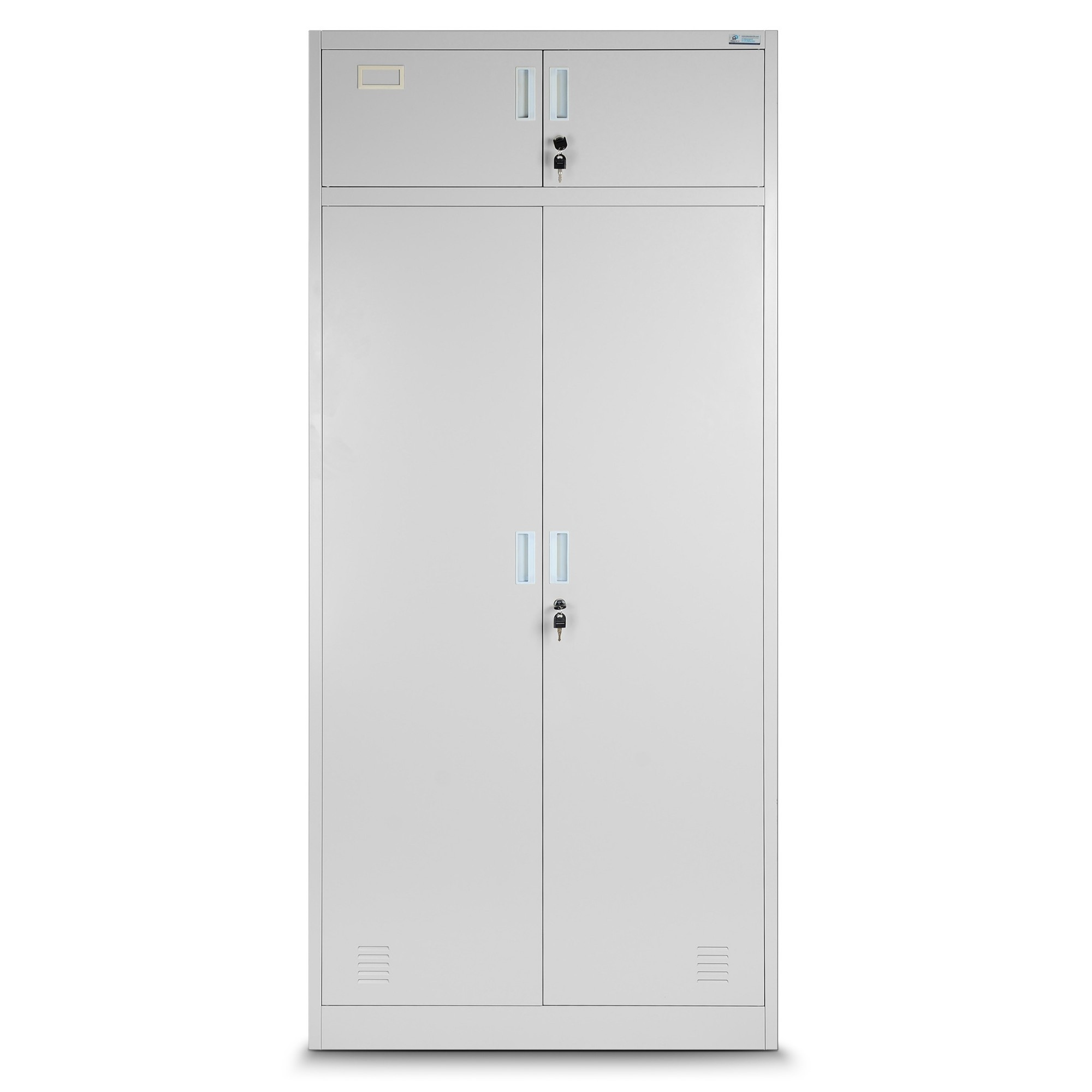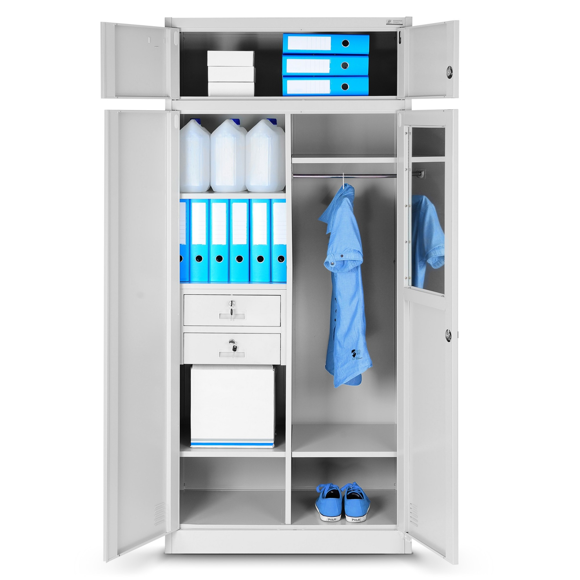 Plechová šatní skříň uzamykatelná s místem na oblečení BORYS, 900 x 1850 x 500 mm, šedá