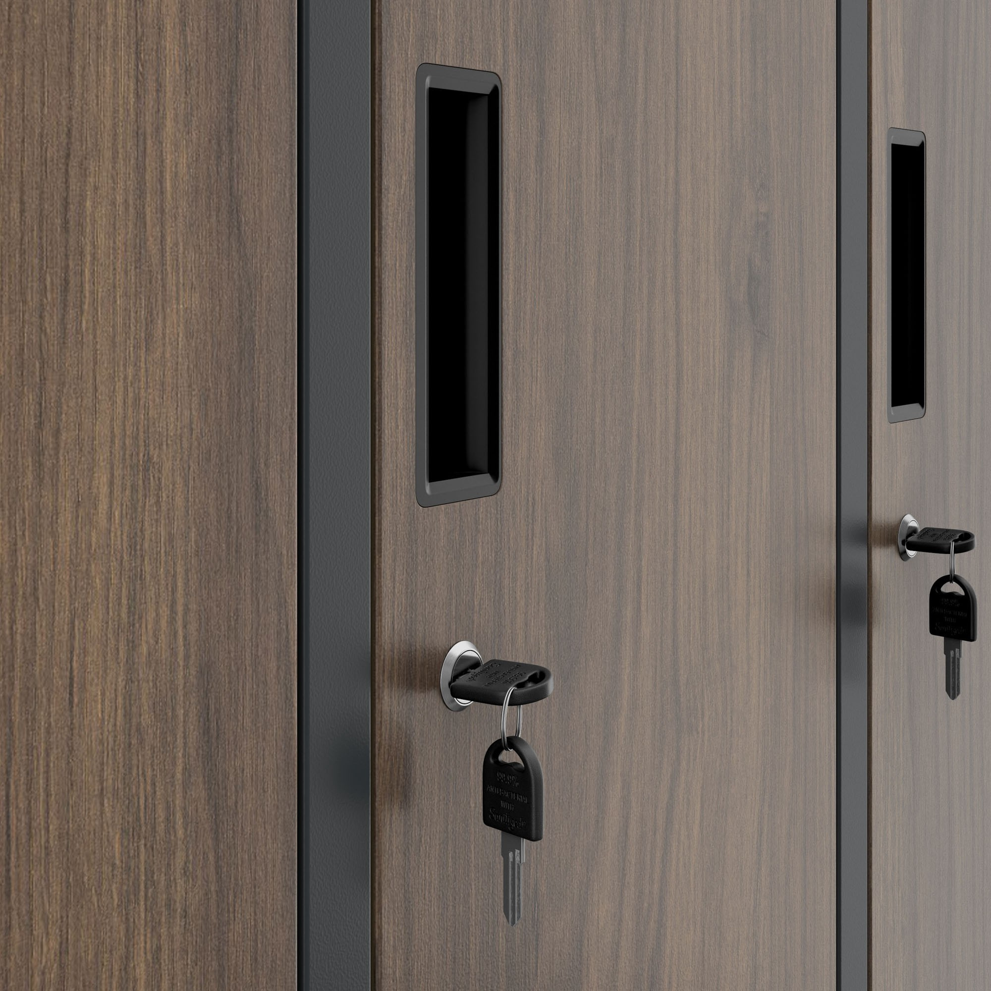 - Prostorná a praktická: Skříň IGOR nabízí 6 samostatných uzamykatelných schránek, které poskytují dostatek prostoru pro uložení osobních věcí až pro šest osob. Každá schránka je dostatečně velká pro oblečení, tašky, boty a další předměty.