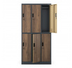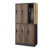 Plechová uzamykatelná šatní skříň s 6 boxy IGOR, 900 x 1850 x 450 mm, Eco Design: antracitová/ořech