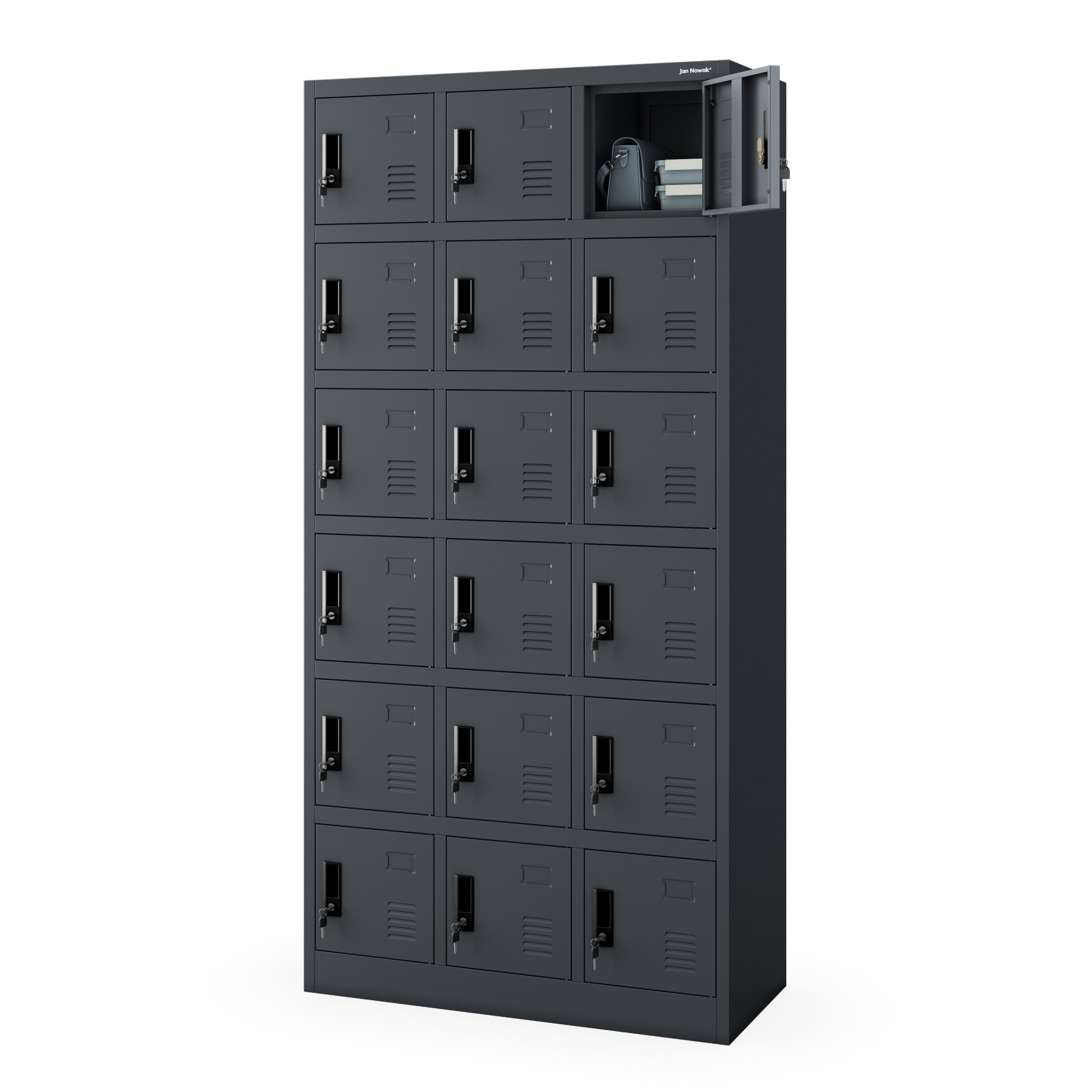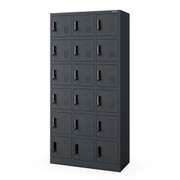 18 samostatných přihrádek umožňuje ukládání oblečení, obuvi, batohů a osobních předmětů. Tato struktura zajišťuje efektivní využití dostupného místa a pohodlné používání více lidmi. Organizace se stává mnohem efektivnější.