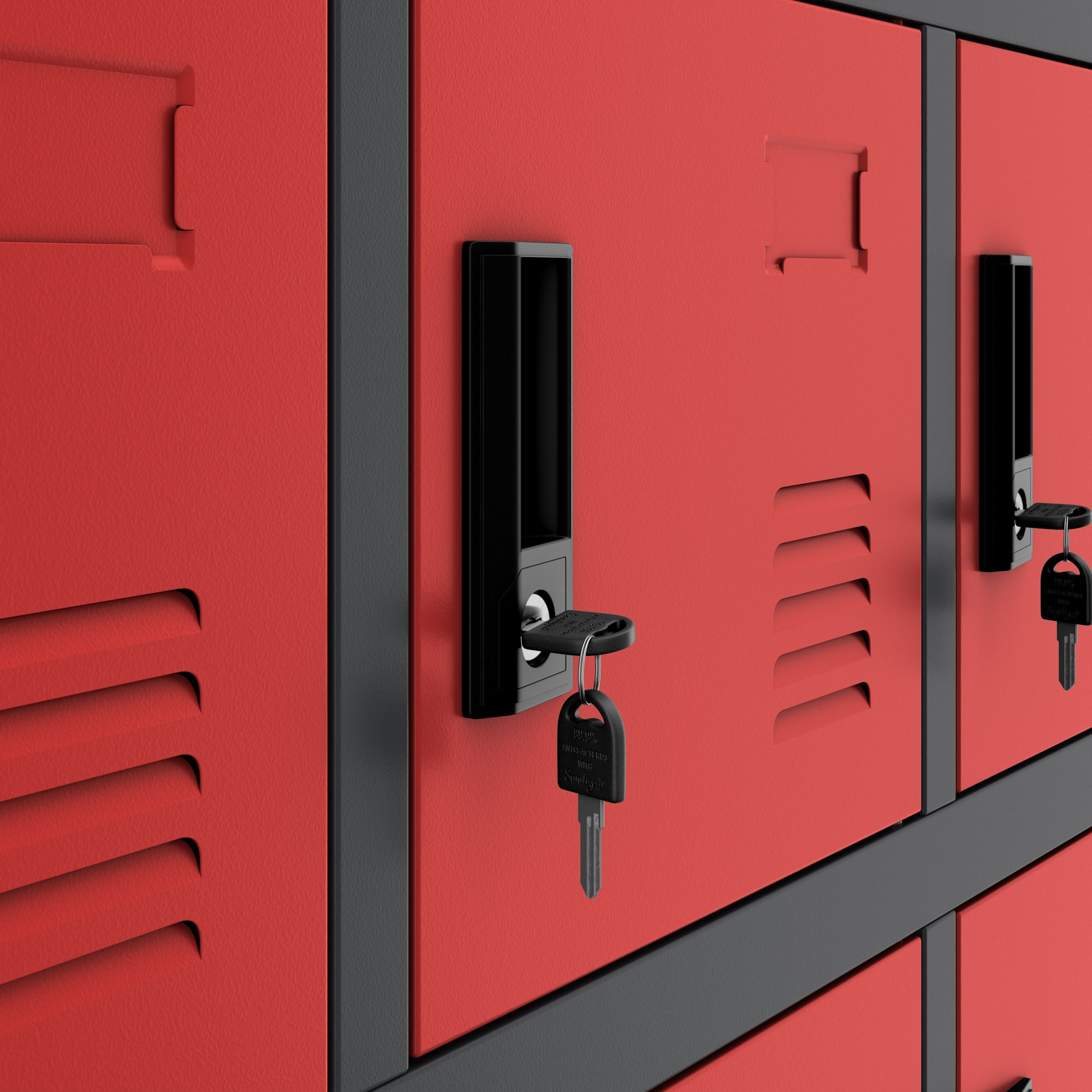 Každá přihrádka skříně KAROL má pevný zámek, který chrání proti krádeži. Zavírání přihrádky na klíč zaručuje kontrolu nad přístupem k obsahu a klid ohledně bezpečnosti cenných předmětů nebo důležitých dokumentů. Součástí je univerzální klíč, který v případě potřeby otevře všechny přihrádky. Je to skvělá volba při ztrátě některého klíče.