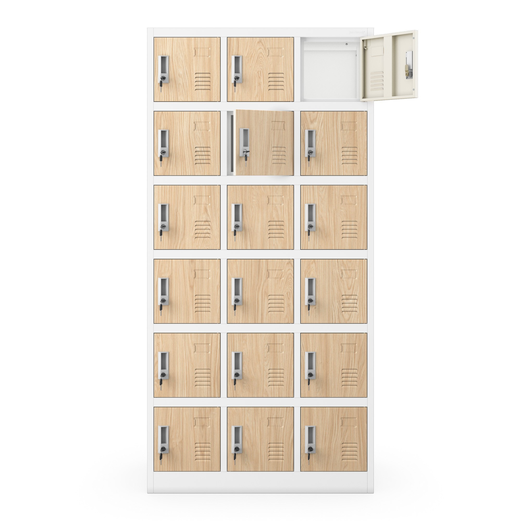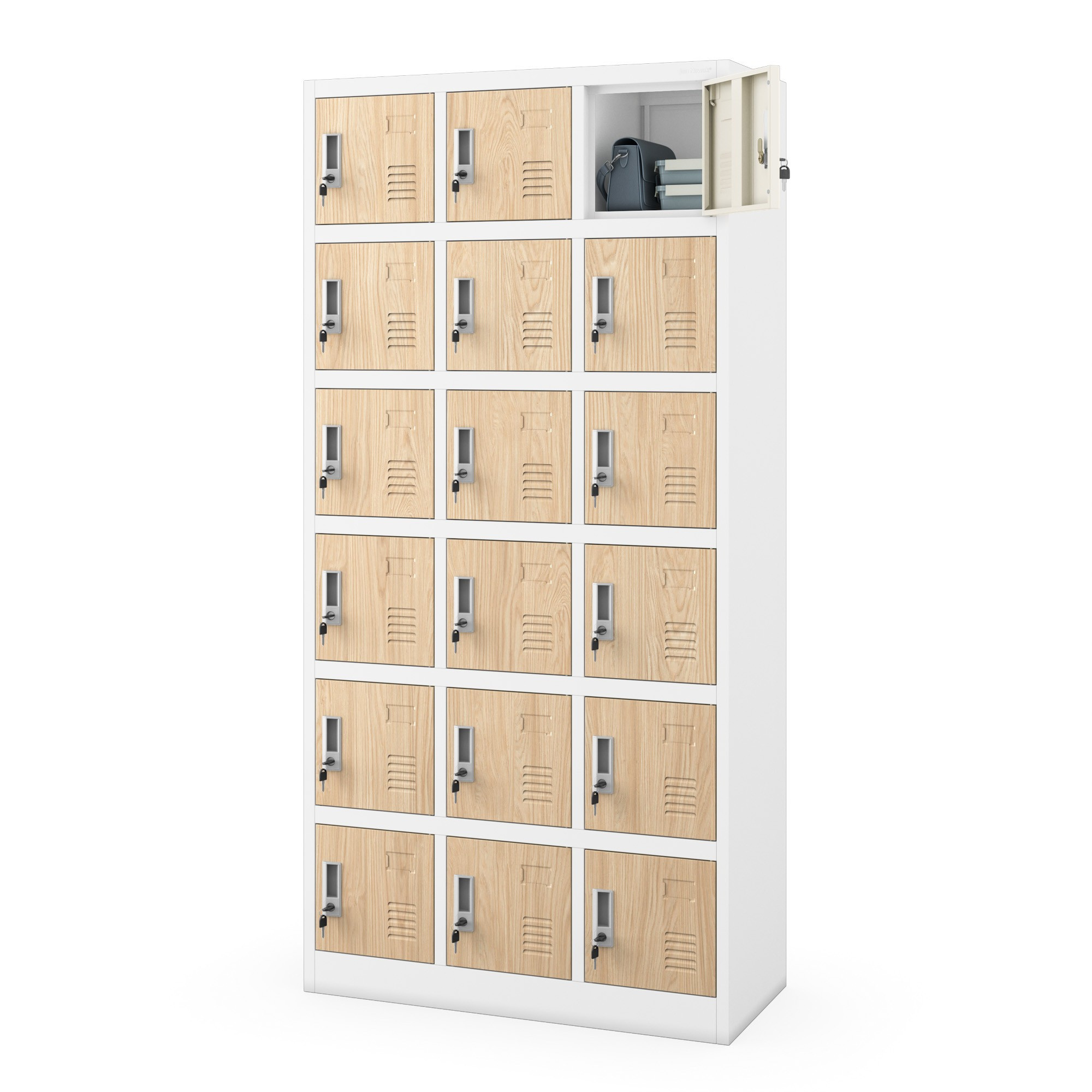 - 18 uzamykatelných přihrádek: Poskytuje dostatek prostoru pro uložení osobních věcí a zajišťuje jejich bezpečnost.