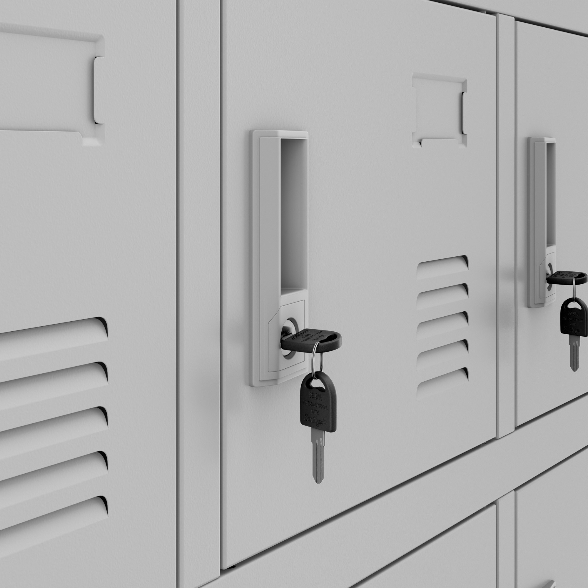 Každá přihrádka skříně KAROL má pevný zámek, který chrání proti krádeži. Zavírání přihrádky na klíč zaručuje kontrolu nad přístupem k obsahu a klid ohledně bezpečnosti cenných předmětů nebo důležitých dokumentů. Součástí je univerzální klíč, který v případě potřeby otevře všechny přihrádky. Je to skvělá volba při ztrátě některého klíče.