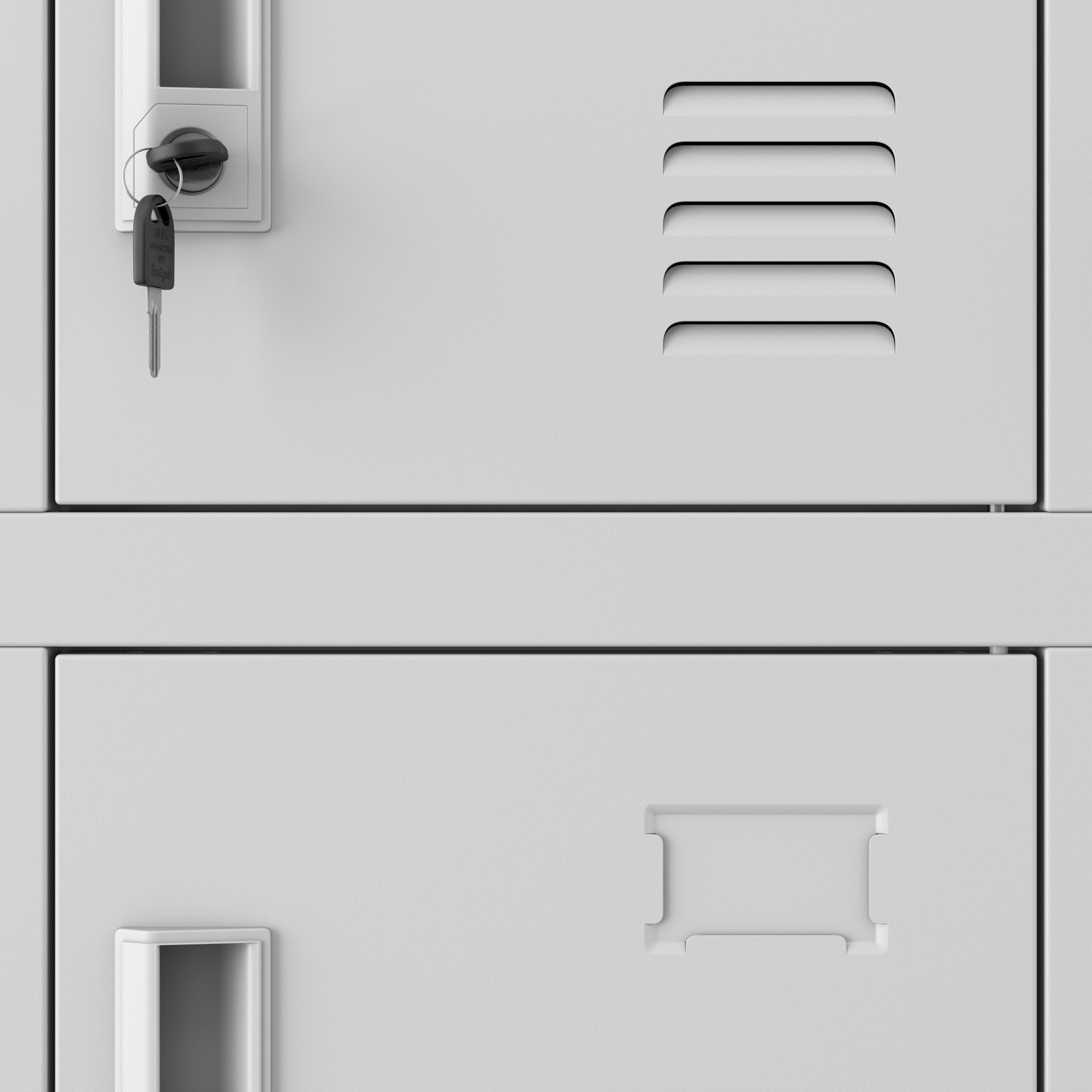 Ventilační otvory ve dveřích každé přihrádky zajišťují cirkulaci vzduchu a snižují vlhkost i nepříjemné pachy uvnitř. Držáky na jmenovky usnadňují rychlou identifikaci jednotlivých přihrádek.