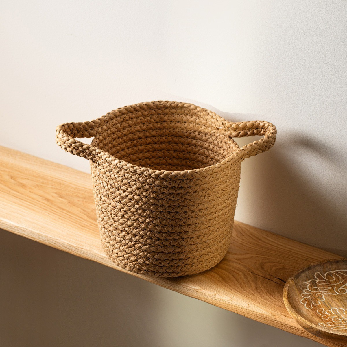 Koš PONTIS je praktické řešení pro ty, kteří si cení pořádku a estetiky. Jeho pletená konstrukce přináší do interiéru přírodní akcent, zároveň zajišťuje funkčnost. Kompaktní velikost zajišťuje, že se skvěle hodí jako organizér na kosmetiku, šperky, domácí doplňky nebo malé textilie.