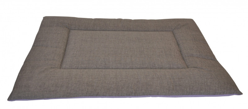 Oboustranná podložka pro pejska. | Barva podložky je z jedné strany šedá, z druhé strany fialová. Podložka je vyplněna dutým polyesterovým antialergenním dutým vláknem. Velikost podložky je 80x60 cm. Tloušťka podložky je 5 cm.