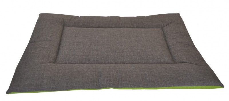 Oboustranná podložka pro pejska. | Barva podložky je z jedné strany šedá, z druhé strany zelená. Podložka je vyplněna dutým polyesterovým antialergenním dutým vláknem. Velikost podložky je 80x60 cm. Tloušťka podložky je 5 cm.