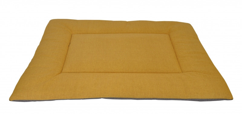 Oboustranná podložka pro pejska. | Barva podložky je z jedné strany šedá, z druhé strany žlutá. Podložka je vyplněna dutým polyesterovým antialergenním dutým vláknem. Velikost podložky je 80x60 cm. Tloušťka podložky je 5 cm.