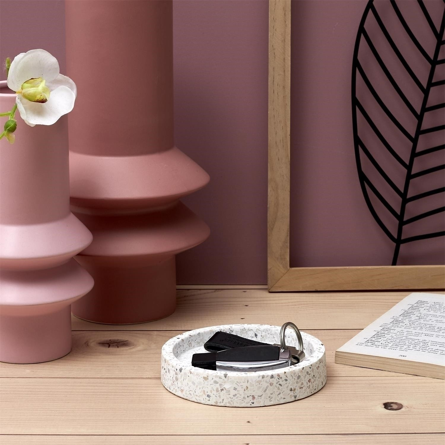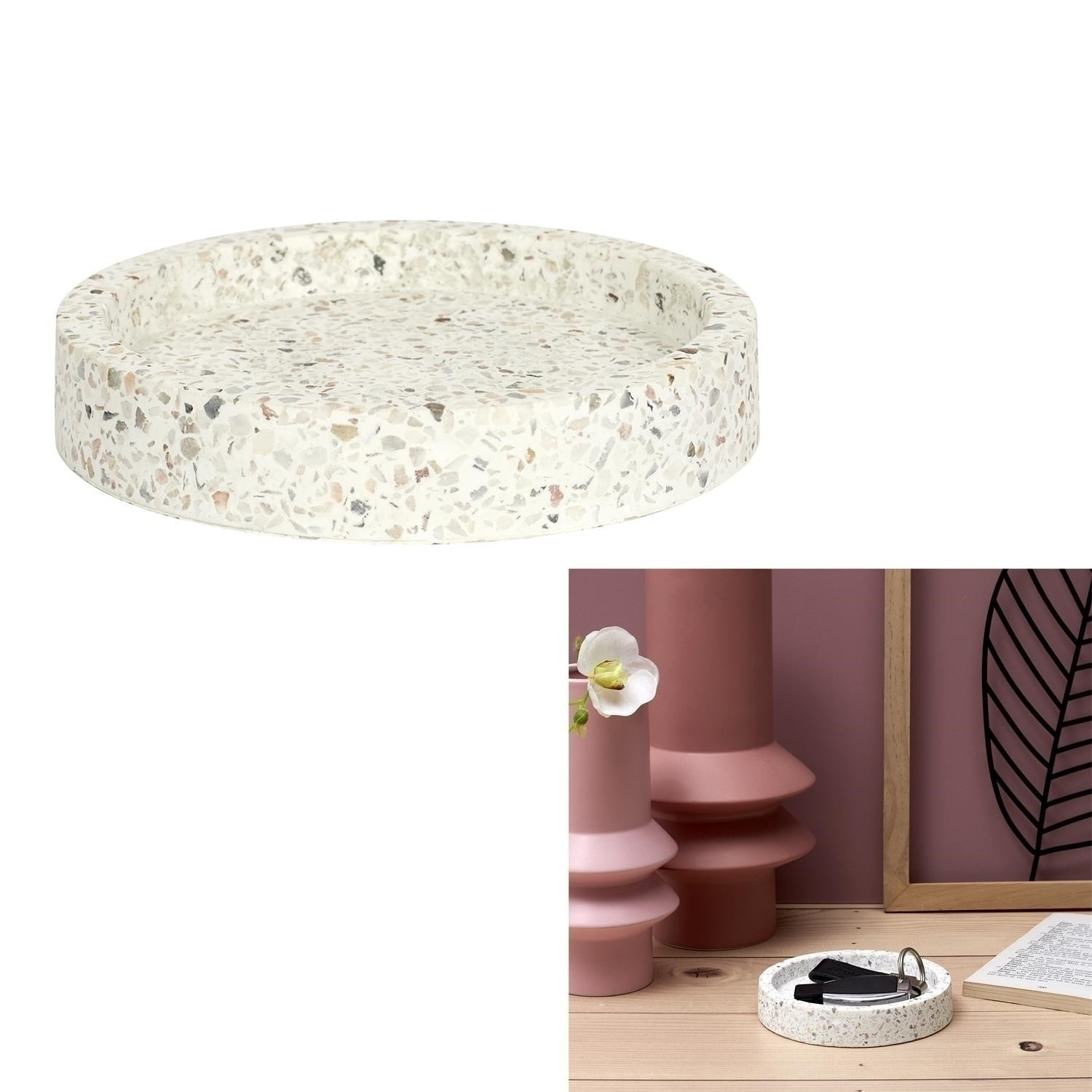 Keramický tác se vzorem terazzo je dalším prvkem série keramiky Terazzo Lastrico. Podnos s namalovanými pastelovými skvrnami nápadně připomíná staré teraco, které se používalo v 80. letech. Tác o průměru 12 cm jistě umožní servírování předkrmů nebo ovoce.