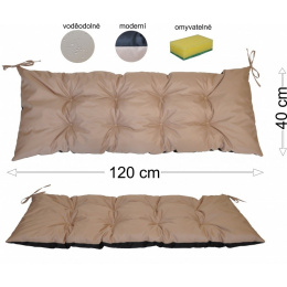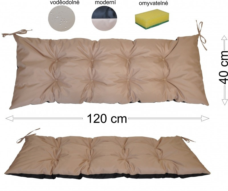 Samostatný podsedák o velikosti 120x40 cm. | Univerzální polstr o velikosti 120x40 cm. Polstr je vyrobený z voděodolné látky Oxford v béžové barvě. Spodní část polstru je vyrobena z černé voděodolné tkaniny. Polstr je plněný molitanovou drtí, která je měkká a zajišťuje trvalý komfort sezení. Polstr je vhodný na paletové sezení, na lavičky nebo houpačky.