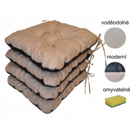 Set 4 kusů podsedáků vyrobených z voděodolné látky. | Velikost sedáku je 38x38 cm. Sedák je plněný molitanovou drtí, která se nesesedne a zaručí příjemné sezení. Sedák je vyrobený z vrchní strany z voděodolné látky Oxford v šedé barvě. Spodní strana sedáku je vyrobena z černé voděodolné látky.