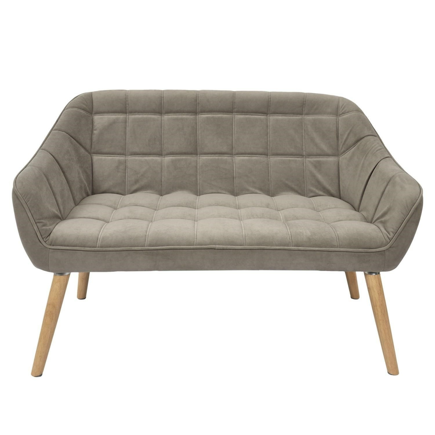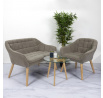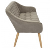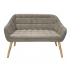 Dvojsedačková pohovka ozdobená látkou v béžovošedé barvě se hodí do menšího obývacího pokoje nebo čekárny v kosmetickém salonu. Sedačka ideálně podtrhne skandinávský styl v interiéru. Sedačka není rozkládací. Nohy pohovky z masivního kaučukového dřeva v přírodní barvě. Pohodlné, široké područky podpírají naše ruce a umožňují pohodlně se posadit. Sofa o hmotnosti 12 kg byla vybavena čalounickou pěnou ozdobenou měkkou tkaninou. Tloušťka pěny 28 kg/m3.