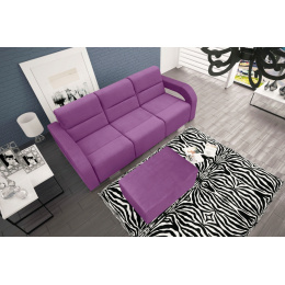 Pohovka Alza je rozkládací a součástí je i praktický úložný prostor a taburet. Zajímavé provedení područí, jí dodává lehkost a eleganci. Díky tomu nepůsobí mohutně a hodí se do každého interiéru. Výplň pohovky tvoří vlnité pružiny faliste v kombinaci s kvalitní PUR pěnou. Rozkládání je díky automatu jednoduché a po rozložení vznikne lůžko vhodné k příležitostnému přespání. Pohovku dodáváme v několika barevných provedeních, které také naleznete v naší nabídce. Rozpis rozměrů najdete na přiloženém obrázku s nákresem. V ceně pohovky je i vyobrazený taburet. Ostatní dekorace nejsou v ceně.