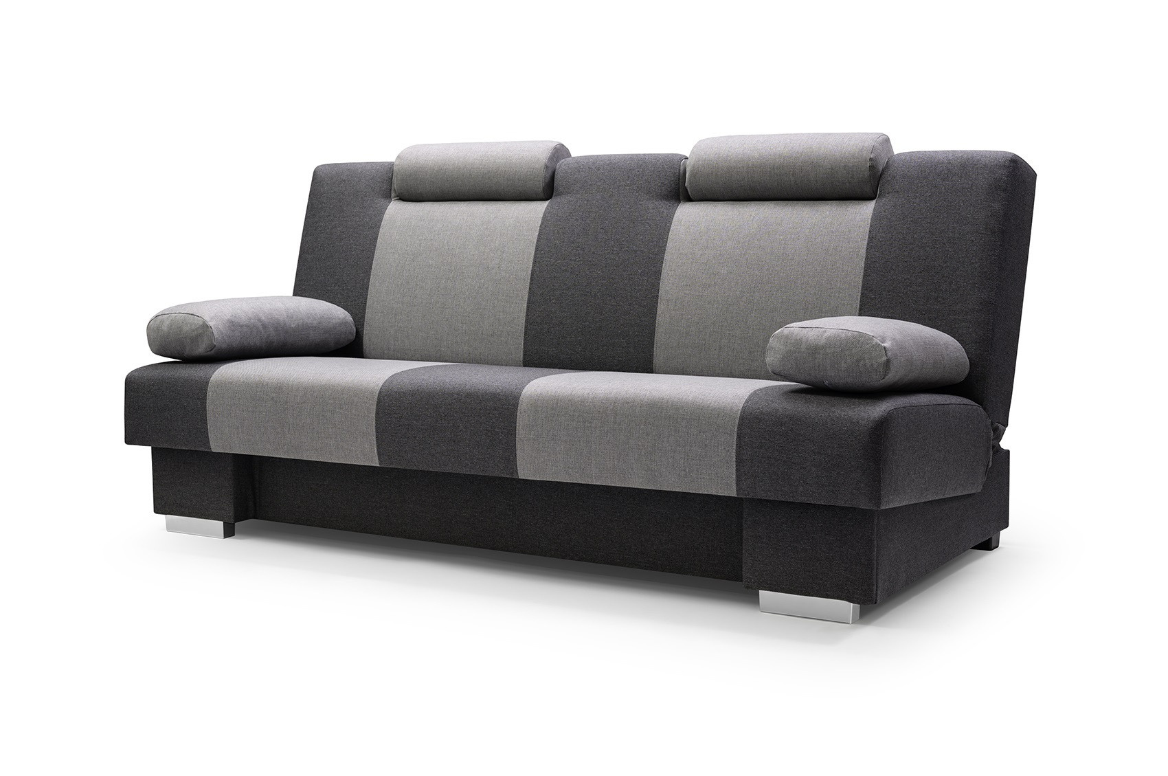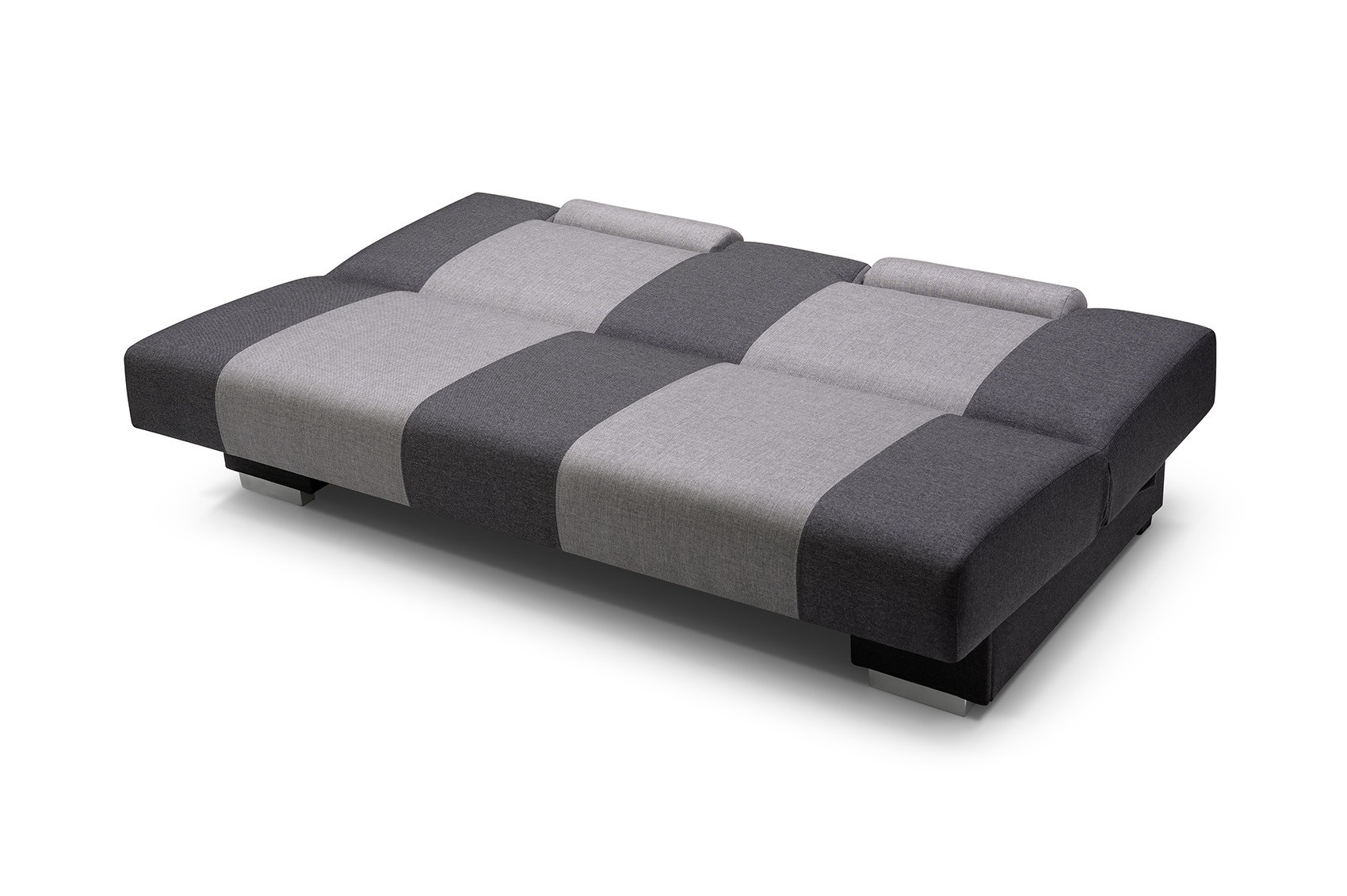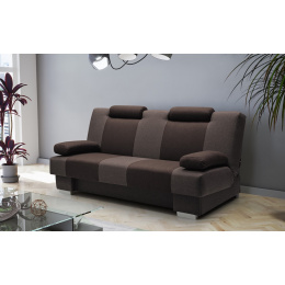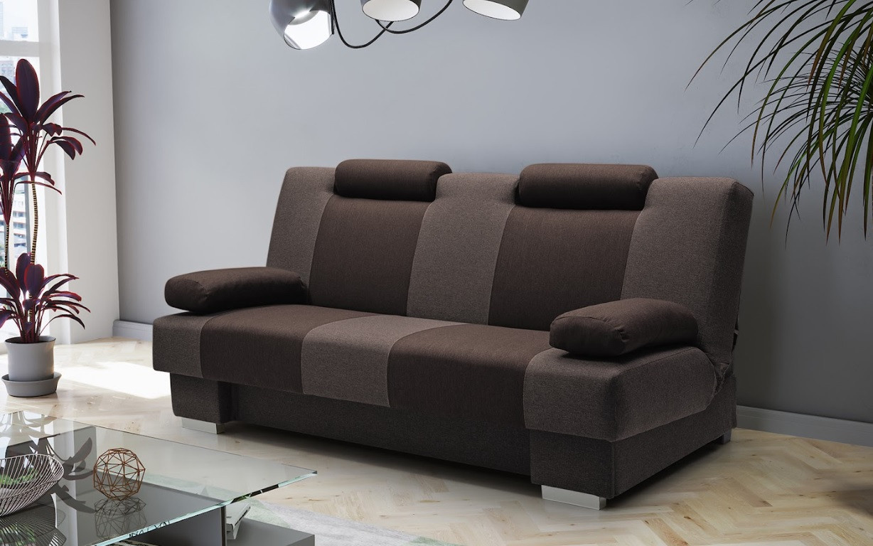 Pohovka ANTONIO je moderní kousek, který se bude skvěle vyjímat v obývacím pokoji zařízeném v moderním stylu. Pohovka je čalouněná látkou, která je k dispozici v široké škále barev, z nichž si můžete vybrat. Zadní část pohovky je rovněž čalouněná - pohovka je volně stojící kus nábytku. Model ANTONIO bez bočnic má mimořádně estetický a moderní vzhled, takže ho nikdo nepřejde lhostejně. Pohovka je vybavena funkcí spaní a prostorným úložným prostorem na lůžkoviny, který nám pomůže udržet v pokoji pořádek. Dřevěný rám pohovky kontrastuje s chromovanými nohami, které podtrhují výjimečně originální charakter nábytku. ANTONIO je pohovka, která je pro zvýšení pohodlí vybavena nastavitelnými opěrkami hlavy - ty lze nastavit podle individuálních preferencí. Dvoubarevná pohovka, zakončená širokými svislými pruhy, je vyplněna vlnitou pružinou a pěnou T-30 - materiály, které zaručují správnou pevnost sedáku; nedeformuje se a zároveň poskytuje pohodlné sezení. Takto uspořádaná pohovka bude v industriálním prostoru vypadat dokonale.