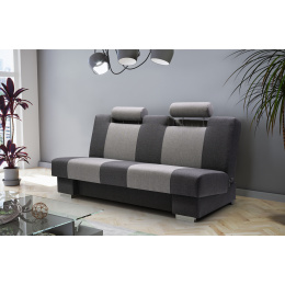 Pohovka ANTONIO je moderní kousek, který se bude skvěle vyjímat v obývacím pokoji zařízeném v moderním stylu. Pohovka je čalouněná látkou, která je k dispozici v široké škále barev, z nichž si můžete vybrat. Zadní část pohovky je rovněž čalouněná - pohovka je volně stojící kus nábytku. Model ANTONIO bez bočnic má mimořádně estetický a moderní vzhled, takže ho nikdo nepřejde lhostejně. Pohovka je vybavena funkcí spaní a prostorným úložným prostorem na lůžkoviny, který nám pomůže udržet v pokoji pořádek. Dřevěný rám pohovky kontrastuje s chromovanými nohami, které podtrhují výjimečně originální charakter nábytku. ANTONIO je pohovka, která je pro zvýšení pohodlí vybavena nastavitelnými opěrkami hlavy - ty lze nastavit podle individuálních preferencí. Dvoubarevná pohovka, zakončená širokými svislými pruhy, je vyplněna vlnitou pružinou a pěnou T-30 - materiály, které zaručují správnou pevnost sedáku; nedeformuje se a zároveň poskytuje pohodlné sezení. Takto uspořádaná pohovka bude v industriálním prostoru vypadat dokonale.