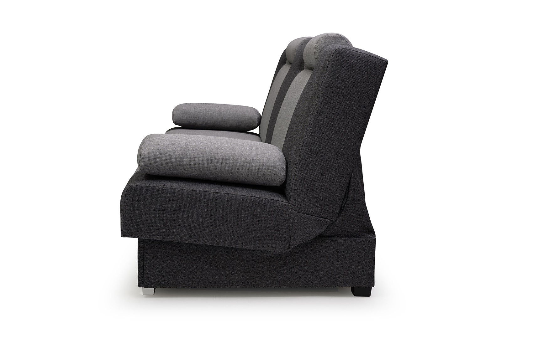 Pohovka ANTONIO je moderní kousek, který se bude skvěle vyjímat v obývacím pokoji zařízeném v moderním stylu. Pohovka je čalouněná látkou, která je k dispozici v široké škále barev, z nichž si můžete vybrat. Zadní část pohovky je rovněž čalouněná - pohovka je volně stojící kus nábytku. Model ANTONIO bez bočnic má mimořádně estetický a moderní vzhled, takže ho nikdo nepřejde lhostejně. Pohovka je vybavena funkcí spaní a prostorným úložným prostorem na lůžkoviny, který nám pomůže udržet v pokoji pořádek. Dřevěný rám pohovky kontrastuje s chromovanými nohami, které podtrhují výjimečně originální charakter nábytku. ANTONIO je pohovka, která je pro zvýšení pohodlí vybavena nastavitelnými opěrkami hlavy - ty lze nastavit podle individuálních preferencí. Dvoubarevná pohovka, zakončená širokými svislými pruhy, je vyplněna vlnitou pružinou a pěnou T-30 - materiály, které zaručují správnou pevnost sedáku; nedeformuje se a zároveň poskytuje pohodlné sezení. Takto uspořádaná pohovka bude v industriálním prostoru vypadat dokonale.